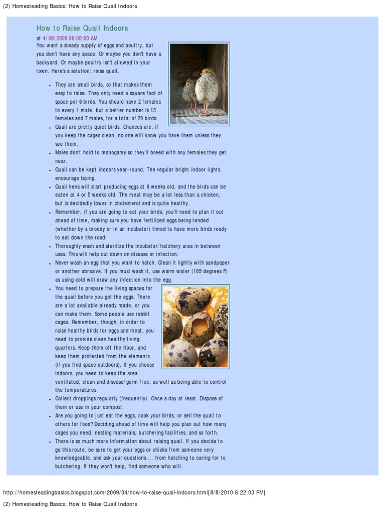 Homesteading Basics How To Raise Quail Indoors Chicken Birds