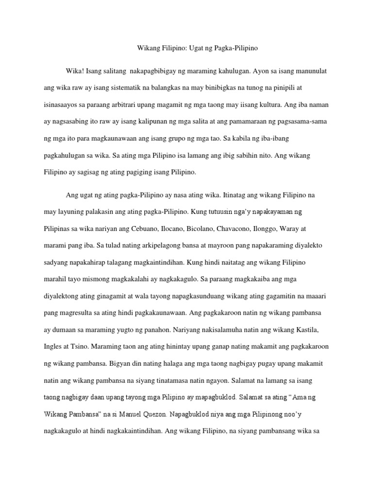 Wikang Filipino Ugat Ng Pagka Pilipino