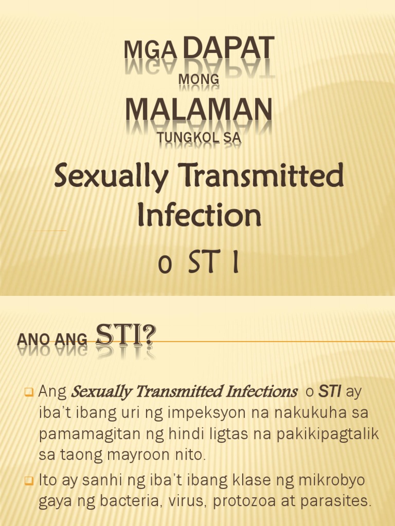 Ang bacteria na Neisseria gonorrhoea ang nagdudulot ng sakit na maaaring kumalat sa pamamagitan ng unprotected vaginal oral at anal sex. Jan 06 2021 Ang Sexually Transmitted Infections o STIs ay ang mga uri ng sakit na naipapasa o nakukuha mula sa pakikipagtalik. Gusto ko ito pigalankung gusto mo tumulong sa akinplease share this.
