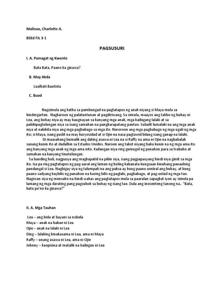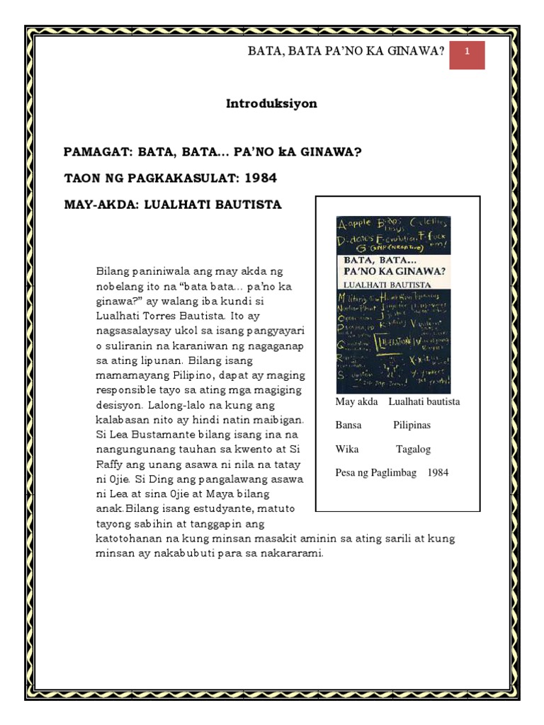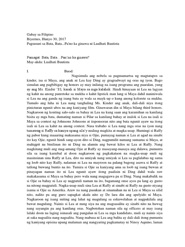 Mar 19 2015 Bata Bata. Bata bata paano ka ginawa. May Akda Lualhati Bautista C.